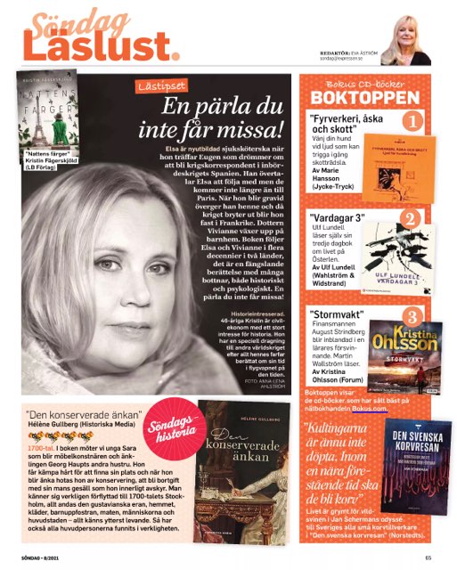 ”De bästa feelgoodromanerna i mars”, artikel i GP, 7 mar 2021.