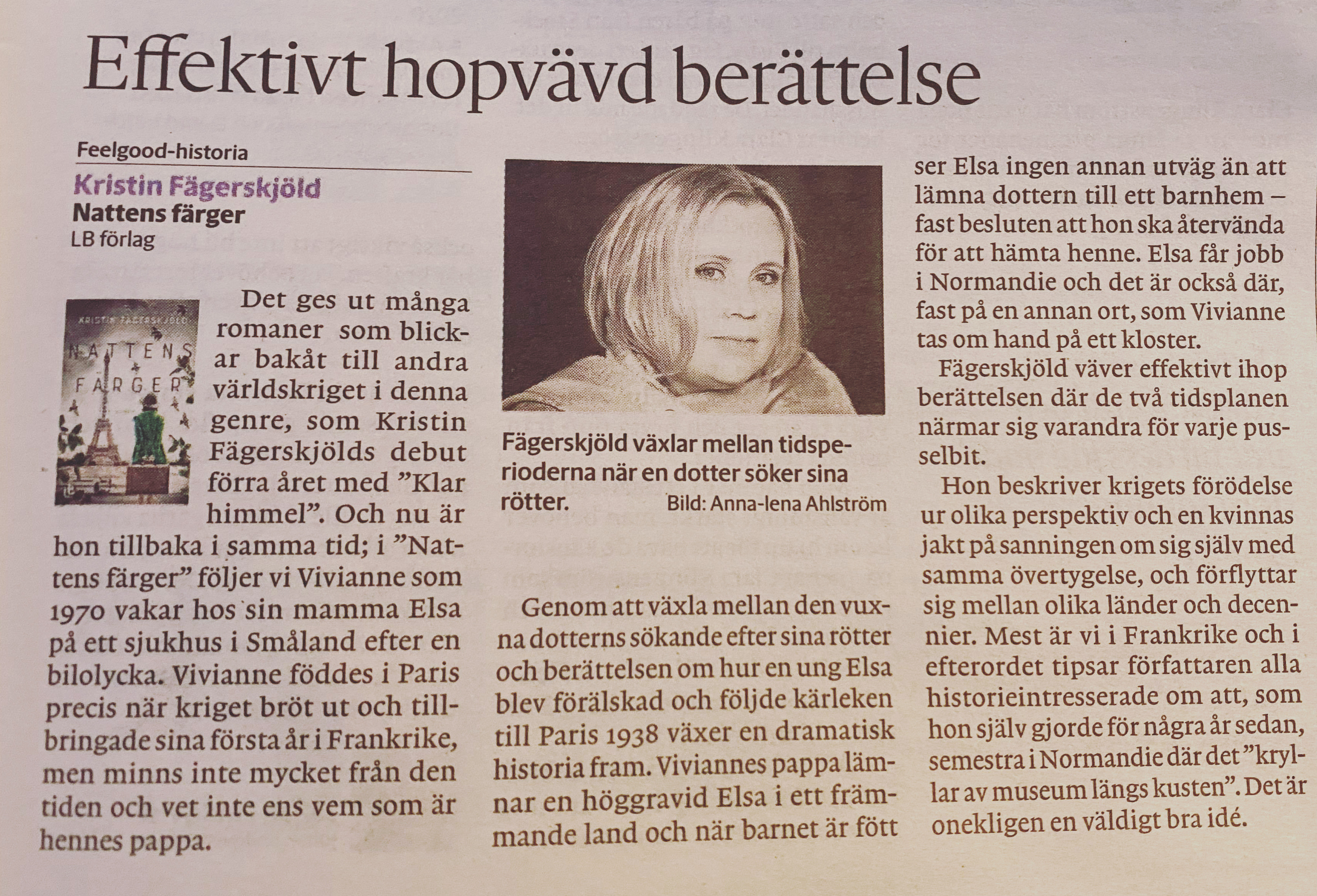 Kristin Fägerskjöld släpper ny roman, artikel i Smålands Dagblad, 8 september 2024.